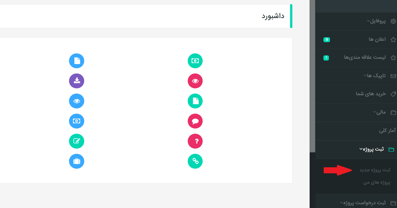 برای ثبت و فروش پروژه های خود بعد از ثبت نام از قسمت ورود وارد پنل کاربری خود شوید و از قسمت ثبت پروژه روی ثبت پروژه جدید کلیک کنید.
