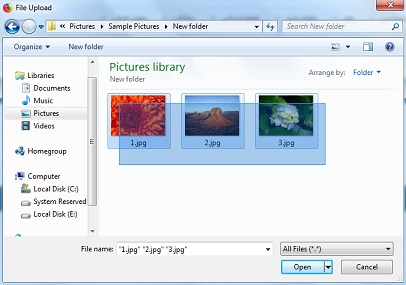 5-برای آپلود چند تصویر از پروژه میتوانید عکس ها را در یک پوشه قرار دهید و با نگهداشتن موس همه را باهم انتخاب نمایید. حجم تصویر انتخاب شده باید بیشتر از 200 کیلوبایت باشد.