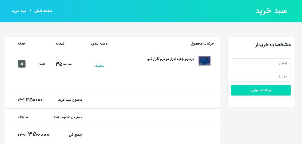 شماره موبایل و یا ایمیل خود را وارد نمایید تا کدپیگیری خرید برای شما ارسال گردد.در نهایت دکمه پرداخت نهایی کلیک نمایید تا به درگاه پرداخت منتقل شوید.