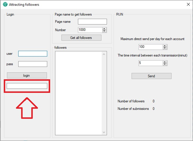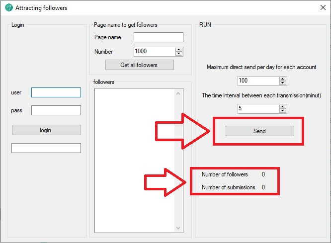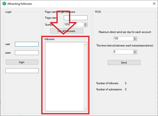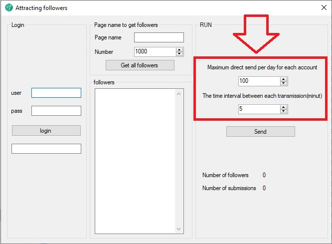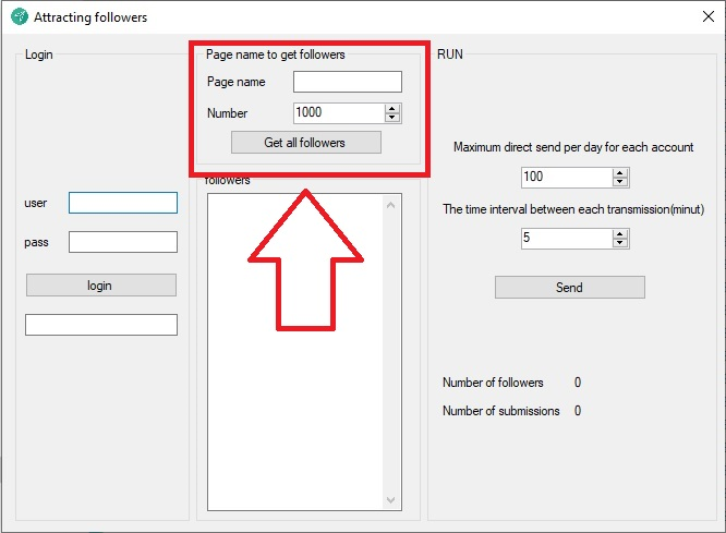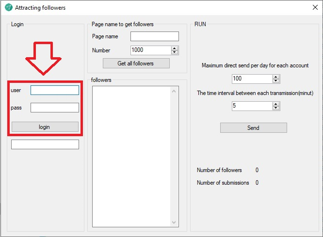 برای شروع طبق تصویر زیر نام های کاربری خود را که میخواهید توسط آن کاربر جذب کنید را در نرم افزار ثبت کنید.