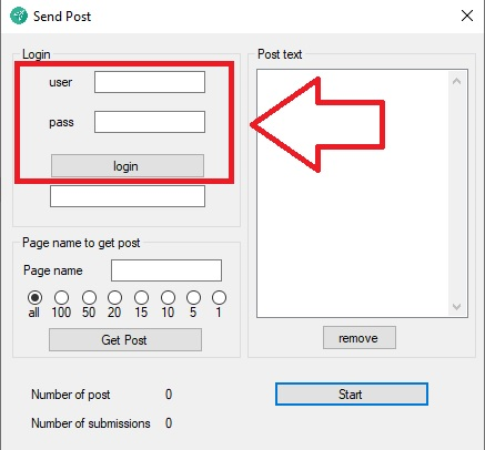 برای شروع طبق تصویر زیر نام کاربری خود را که میخواهید توسط آن ها پیام ارسال شود را در نرم افزار ثبت کنید.