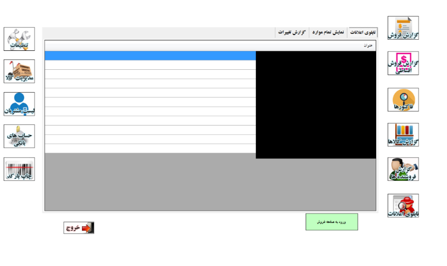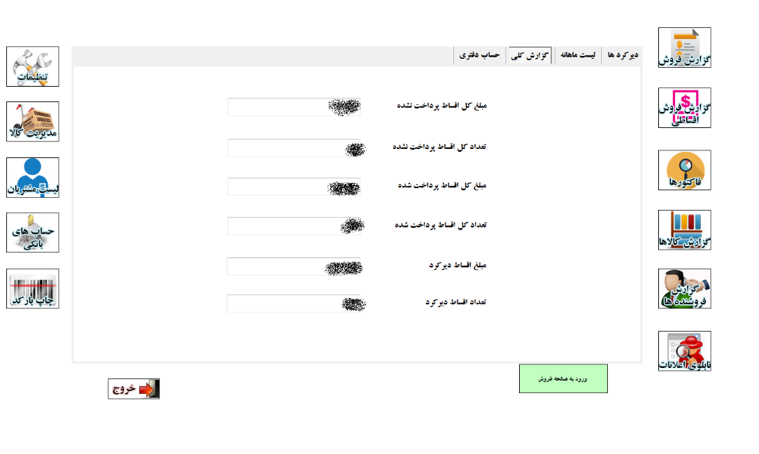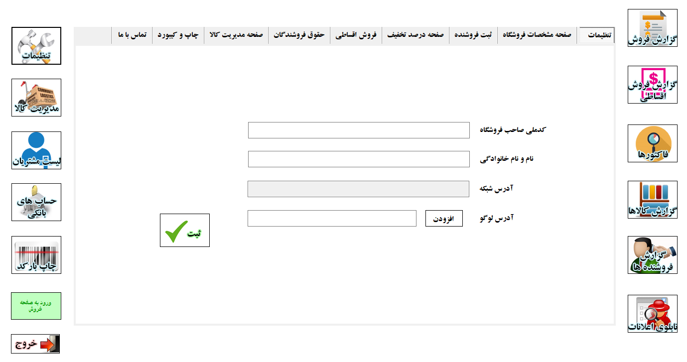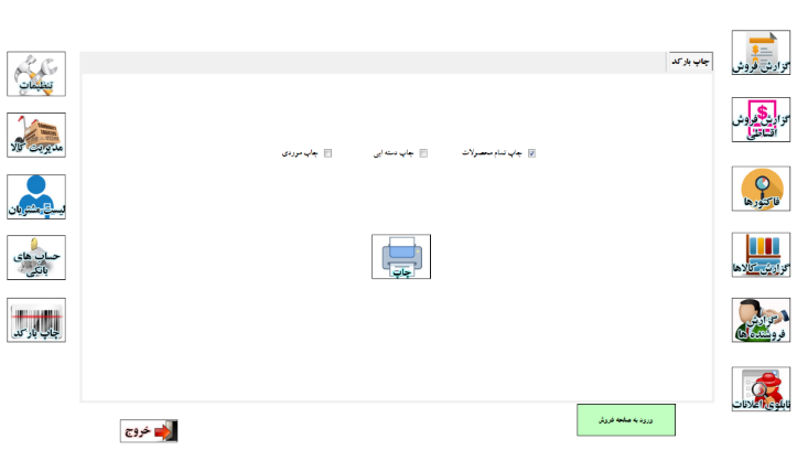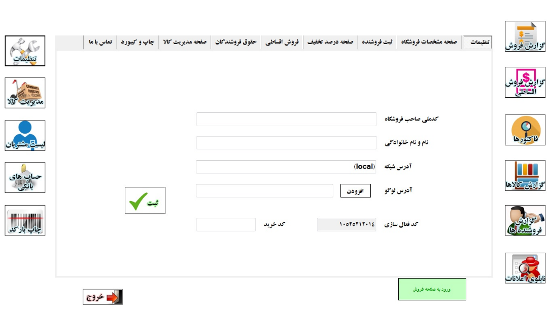 در صورتی که با کلمه عبوری که admin تعریف شده است وارد نرم افزار شوید برای ورود به صفحه فروش همانند شکل بر روی گزینه ورود به صفحه فروش کلیک نمایید.