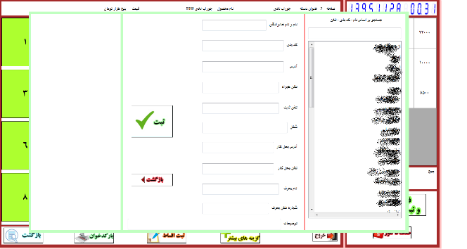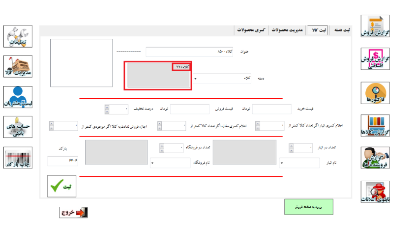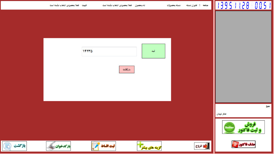 در صورت اتصال بارکد خوان با انتخاب این گزینه شماره بارکد خوان وارد میشود و با انتخاب گزینه ثبت آن محصول به فاکتور اضافه می شود.