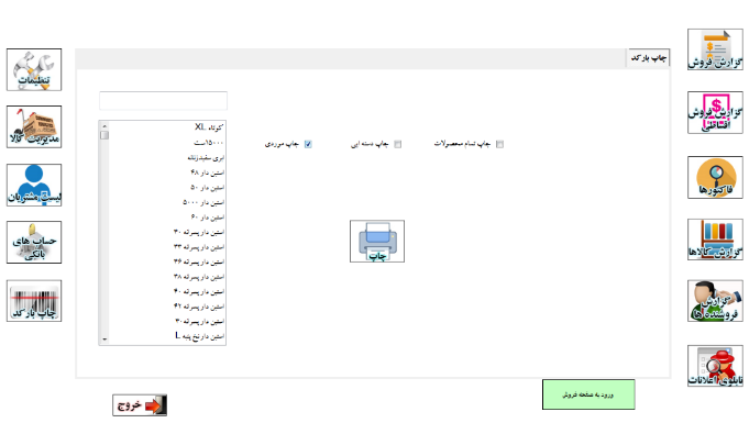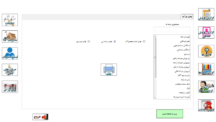 اگر محصول خاصی را بخواهید بارکد آن را چاپ نمایید گزینه چاپ موردی را کلیک نمایید.