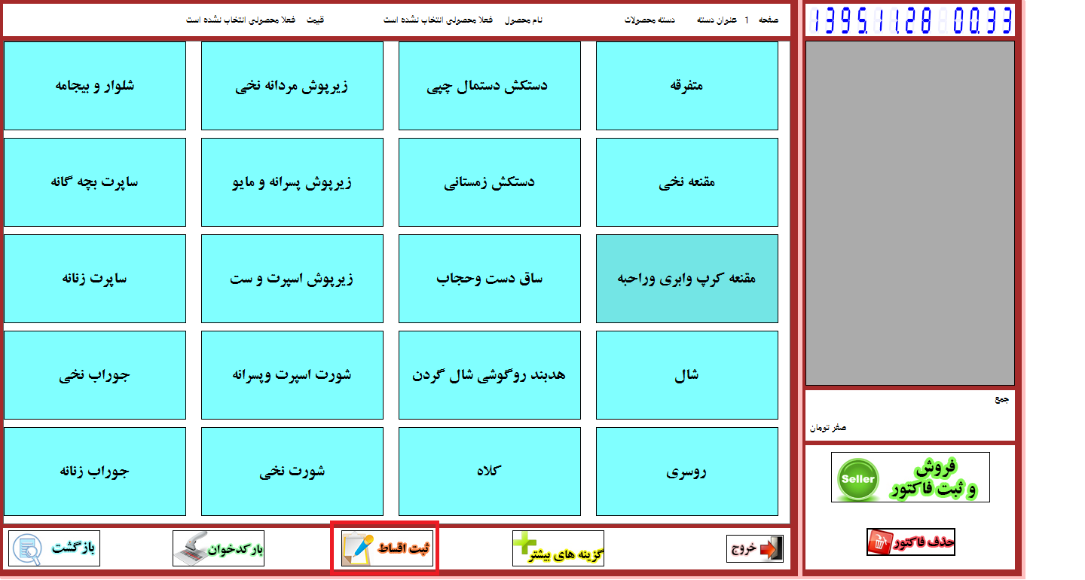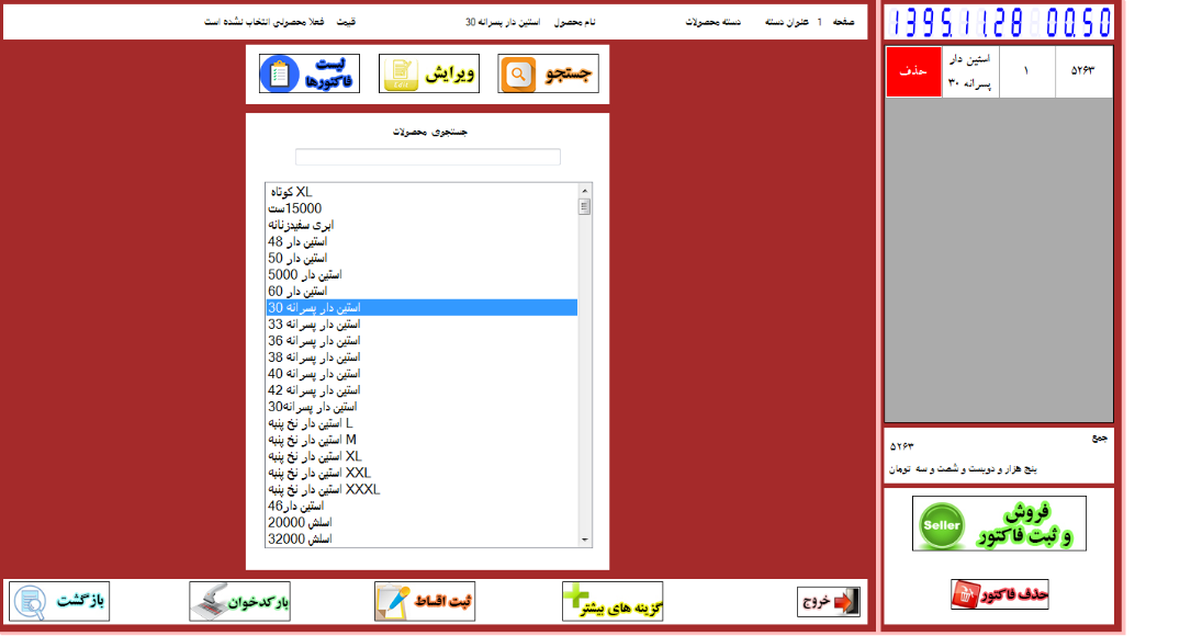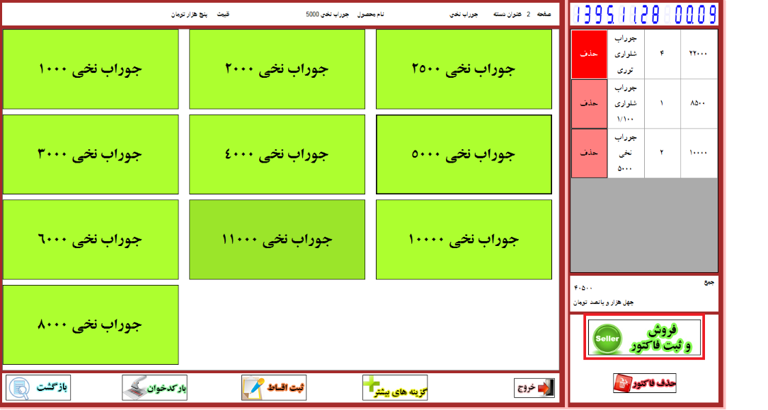 بعداز اتمام انتخاب محصولات بر روی گزینه فروش و ثبت فاکتور کلیک نمایید.