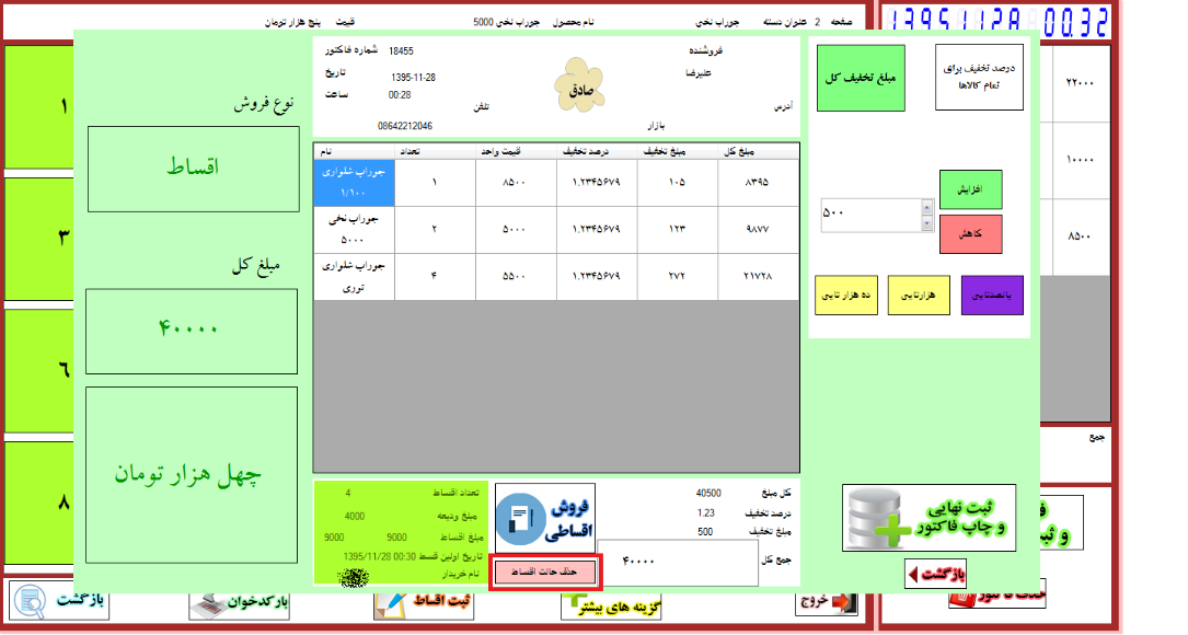به وسیله گزینه حذف حالت اقساطی می توان فاکتور را از حالت اقساطی خارج نمود.